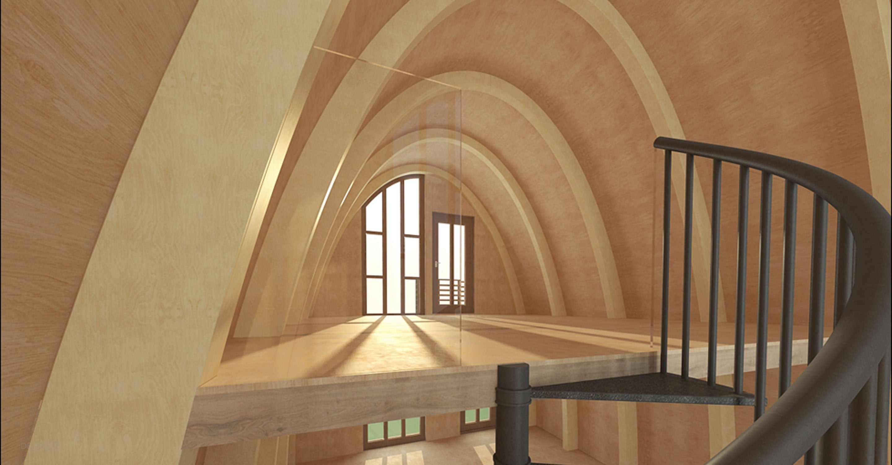 Plywood is a timber product that is optimized for strength and consistency. Curving the timber so it is in tension, further optimizes its strength.