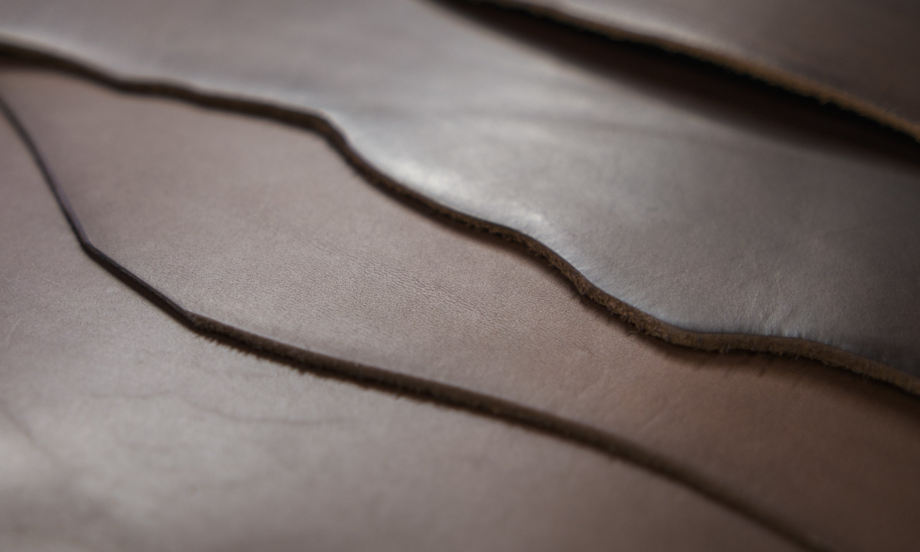 We use a variety of different leather types. All selections are from European hides, are full grain and are vegetable tanned. In general, a hide of cow leather can be 4.5 to 6 square meters in size. Over the complete size, it will be of various depths and densities. Firm grain on the back but soft on the underbelly.