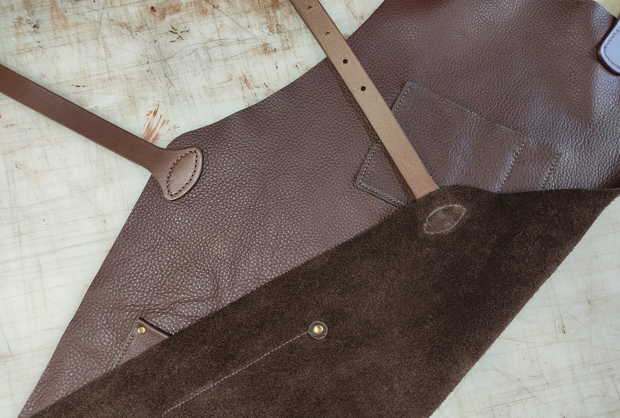 Made from a 1.2 mm thick leather, the aprons balance robustness with softness to make them a ideal for all kinds of crafts and trades. We generally select a leather that has a slightly polished finish so it is easy to keep clean.