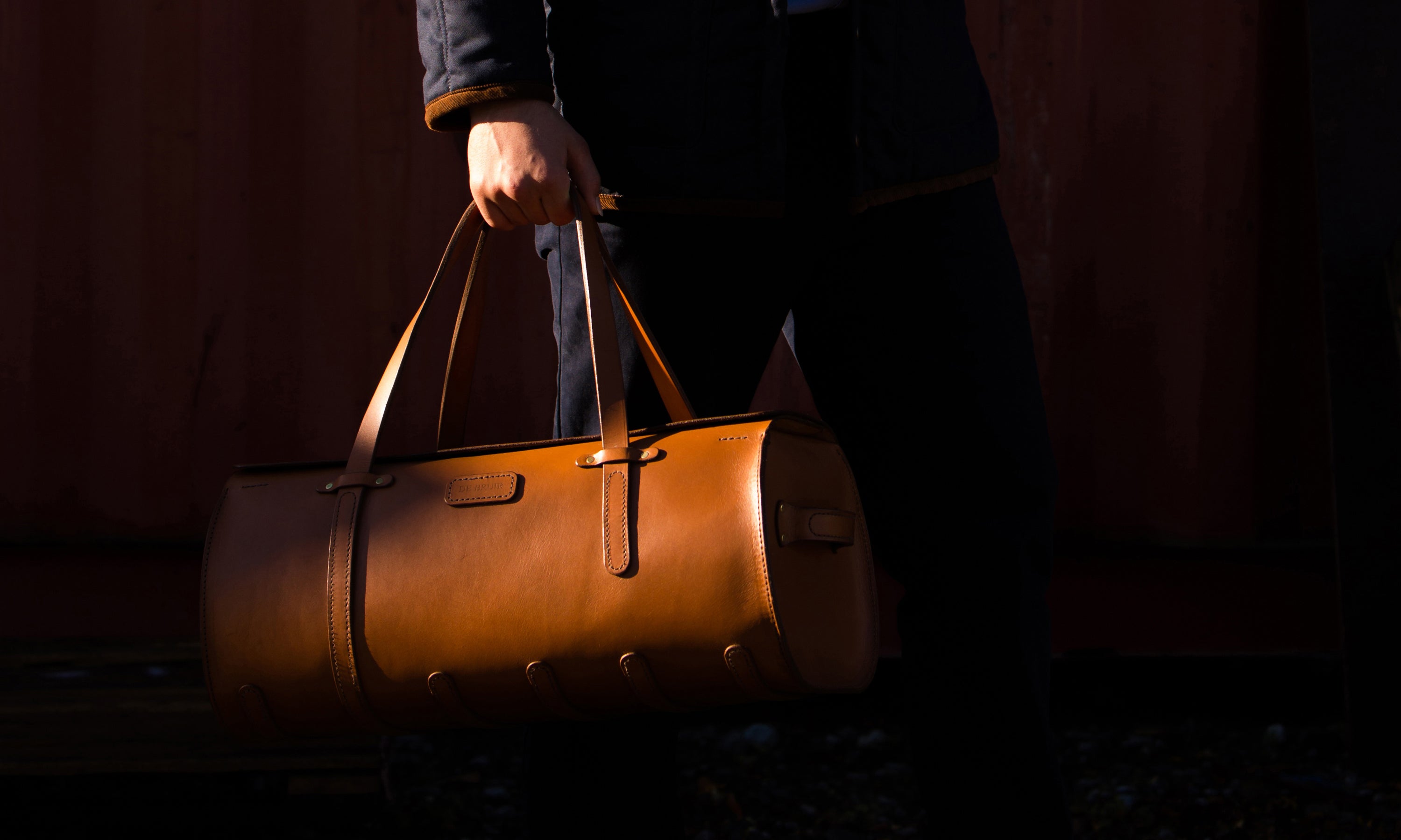 The Duffle Bag is a very casual holdall design. It’s long tubular shape gives it a vintage sports aesthetic. The spacious interior is accessed by opening the top flaps of leather. And should you ever need to overfill, those flaps can stay upright to allow extra gear to be carried. When the bag is open, it can be manoeuvred using the grab handles at each end. While in normal use, the long handles carry comfortably by your side or slung over a shoulder. The Duffle Bag’s rugged construction is designed to withstand regular robust use.