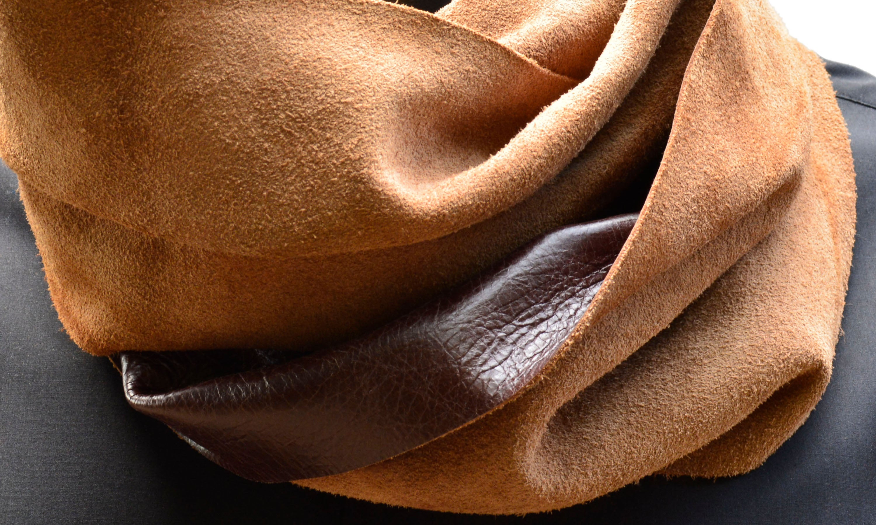 The leather for the scarf is selected from the softest portion of the leather hide. It get increasingly soft and comfortable with use.