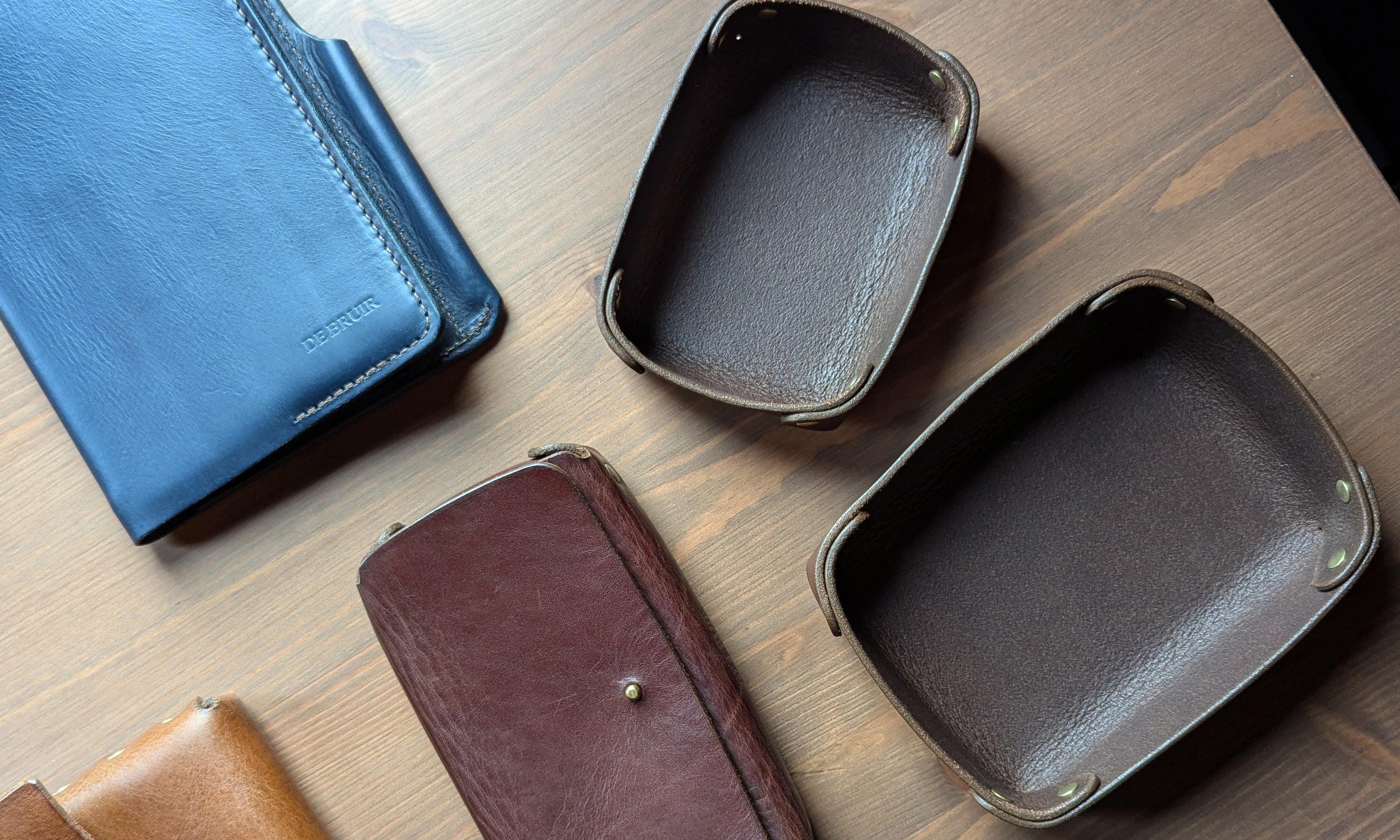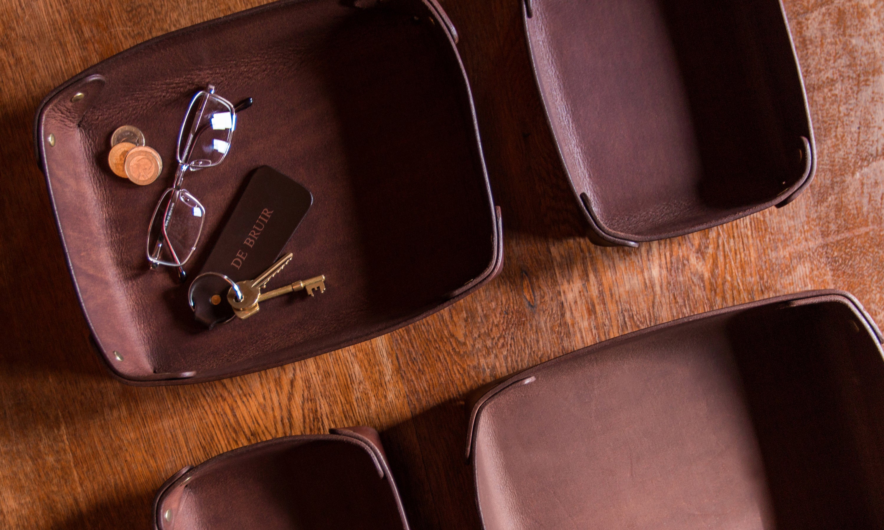 A selection of leather trays are handcrafted at DE BRUIR from premium bridle leather.